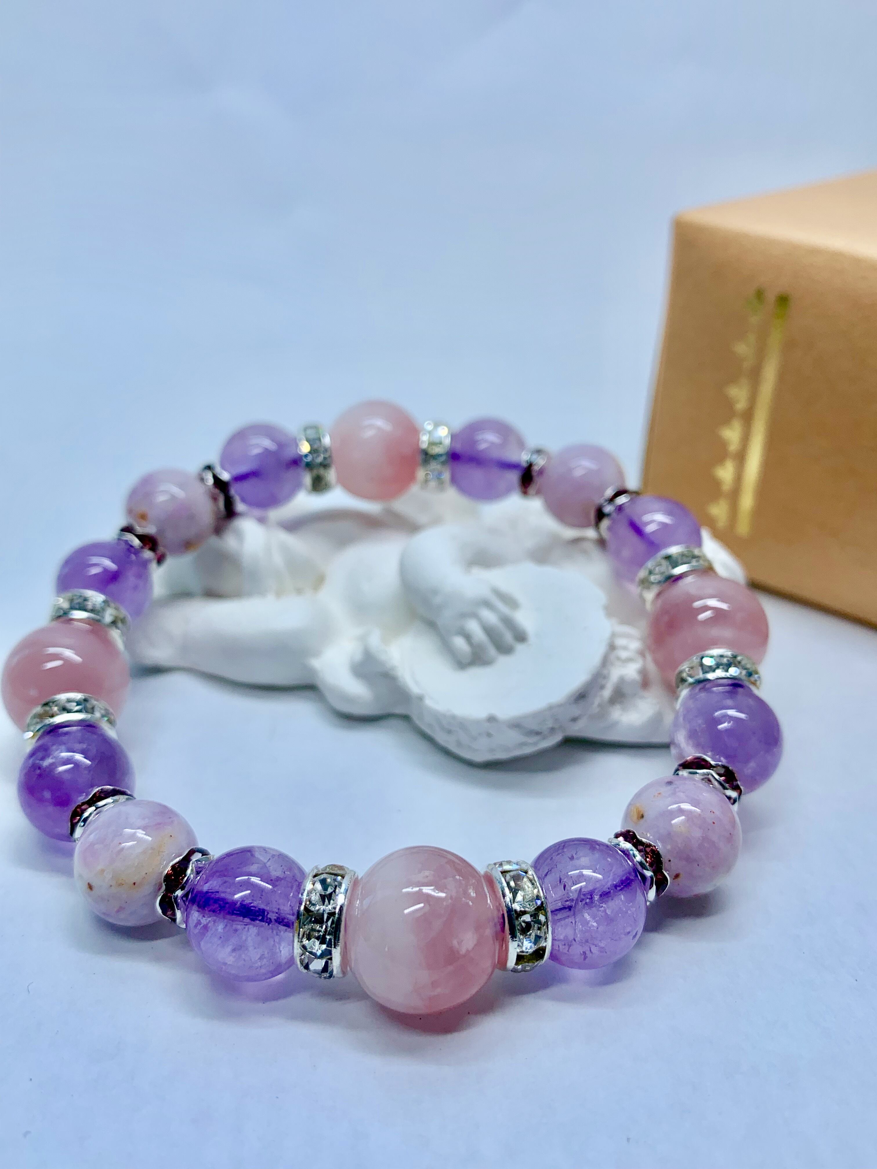 女性らしいラブリーなブレスレットに仕上がりました。ティファニー・ストーンは、あなたの能力や集中力を高めてくれます。また、あなたが、固定観念から一歩出て、視野を広げる助けとなります。自由な発想力をもたらしてくれます。高品質の石ですので、ひとつひとつの石の輝きが、あなたの輝きをさらに際立たせてくれます。